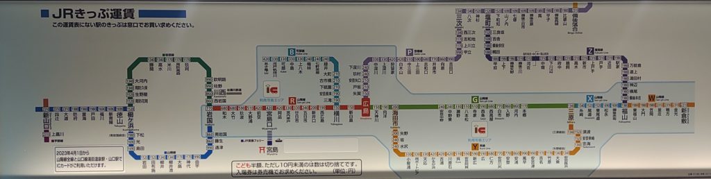 ホーム > 34広島県 / 6中国 / JR西日本 / 広島市 / 広島市内 / 広島支社 広島駅運賃表 広島駅 JR西日本 広島支社 直営駅広島市南区松原町2-37事務管コード:▲800613電報略号:ヒロ駅構造:高架駅(新幹線),(在来線)ホーム:2面4線(新幹線),4面8線(在来線)開業:1894(M27)年6月10日 <新白島 (山陽本線)(芸備線) 天神川>矢賀> Views: 438 カテゴリー:34広島県6中国JR西日本広島市広島市内広島支社 タグ:可部線呉線山陽本線芸備線 KN 旅が好き シェアする Twitter でシェア はてなブックマークに保存 LINE でシェア Facebook でシェア Pocket に保存 Feedly で購読 関連投稿 35山口県 / JR西日本 / 広島支社 岩国駅運賃表 34広島県 / 広島市 / 広島市内 / 広島支社 新白島駅運賃表 35山口県 / JR西日本 / 広島支社 柳井駅運賃表 34広島県 / JR西日本 / 広島市 / 広島市内 / 広島支社 横川駅運賃表 34広島県 / JR西日本 / 広島支社 廿日市駅運賃表 28兵庫県 / JR市内駅 / JR西日本 / 兵庫支社 / 神戸市 / 神戸市内 / 近畿の駅100選 神戸駅運賃表 前の投稿 柳井駅運賃表 次の投稿 新御徒町駅運賃表
