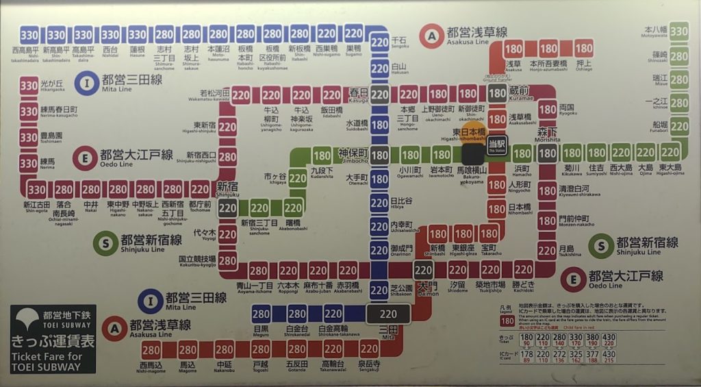ホーム > 中央区 / 東京都営 東日本橋駅運賃表 東日本橋駅 乗換駅;馬喰横山駅, JR馬喰町駅 <人形町 東日本橋 浅草橋> Views: 23 カテゴリー:中央区東京都営 タグ:都営浅草線 KN 旅が好き シェアする Twitter でシェア はてなブックマークに保存 LINE でシェア Facebook でシェア Pocket に保存 Feedly で購読 関連投稿 13東京都 / 地下鉄 / 東京都営 蔵前駅運賃表 13東京都 / 台東区 / 地下鉄 / 東京都営 本所吾妻橋駅運賃表 地下鉄 / 東京メトロ / 東京都営 人形町駅運賃表 13東京都 / 中央区 / 地下鉄 / 東京都営 宝町駅運賃表 東京都営 / 港区 三田駅運賃表 13東京都 / 京急 / 品川区 / 地下鉄 / 東京都営 / 関東私鉄 泉岳寺駅運賃表 前の投稿 都営新宿駅運賃表 次の投稿 嘉義駅料金表 (阿里山森林鉄路)