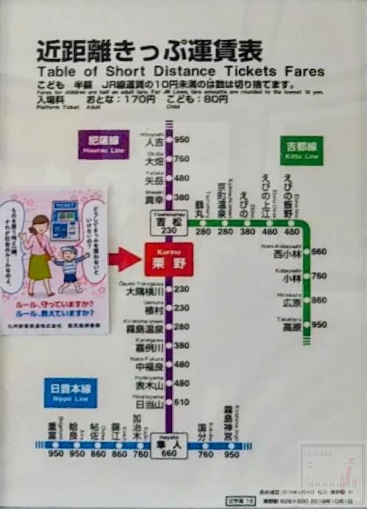 ホーム > 46鹿児島県 / JR九州 / 鹿児島支社 栗野駅運賃表 栗野駅 (くりの) JR九州 鹿児島支社 簡易委託駅事務管コード:▲940202 <大隅横川 栗野 吉松> Views: 4 カテゴリー:46鹿児島県JR九州鹿児島支社 タグ:肥薩線 KN 旅が好き シェアする Twitter でシェア はてなブックマークに保存 LINE でシェア Facebook でシェア Pocket に保存 Feedly で購読 関連投稿 46鹿児島県 / JR九州 / 鹿児島支社 吉松駅運賃表 43熊本県 / JR九州 / 熊本支社 熊本駅運賃表 46鹿児島県 / JR / JR九州 / 鹿児島支社 隼人駅運賃表 44大分県 / JR九州 / 大分支社 大分駅運賃表 46鹿児島県 / JR / JR九州 / 鹿児島支社 加治木駅運賃表 43熊本県 / JR九州 / 熊本支社 / 終着駅 三角駅運賃表 前の投稿 (不鮮明)十日町駅運賃表 次の投稿 多賀城駅運賃表
