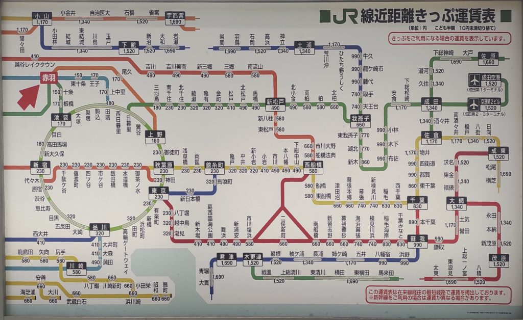 ホーム > 13東京都 / JR東日本 / 北区 / 東京都区内 / 首都圏本部 赤羽駅運賃表 赤羽駅 JR東日本 直営駅東京都北区赤羽一丁目1-1事務管コード:▲441010 (都区内▲449901)電報略号:アネ駅構造:高架駅ホーム:4面8線開業:1885(M18)年3月1日 <尾久<池袋<東十条<十条 東北本線湘南新宿ライン京浜東北線埼京線 浦和>浦和>川口>北赤羽> Views: 54 カテゴリー:13東京都JR東日本北区東京都区内首都圏本部 タグ:上野東京ライン京浜東北線東北本線湘南新宿ライン KN 旅が好き シェアする Twitter でシェア はてなブックマークに保存 LINE でシェア Facebook でシェア Pocket に保存 Feedly で購読 関連投稿 山手線内 / 東京都区内 高輪ゲートウェイ駅運賃表 11埼玉県 / JR東日本 / 大宮支社 新白岡駅運賃表 13東京都 / JR東日本 / 山手線内 / 東京都区内 / 渋谷区 / 首都圏本部 恵比寿駅運賃表 13東京都 / JR東日本 / 山手線内 / 東京都区内 / 首都圏本部 田端駅運賃表 13東京都 / JR東日本 / 乗降者数30万人以上 / 山手線内 / 東京都区内 / 渋谷区 / 首都圏本部 渋谷駅運賃表 11埼玉県 / JR東日本 / 大宮支社 蕨駅運賃表 前の投稿 板橋駅運賃表 次の投稿 西川口駅運賃表