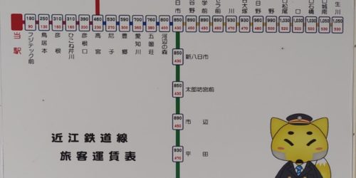2025-8-19 近江鉄道 彦根駅運賃表 彦根駅 (ひこね) 近江鉄道 直営駅 駅員配置駅滋賀県彦根市古沢町40-1駅番号:OR04駅構造:地上駅ホーム:1面2線... カテゴリー 25滋賀県/近江鉄道