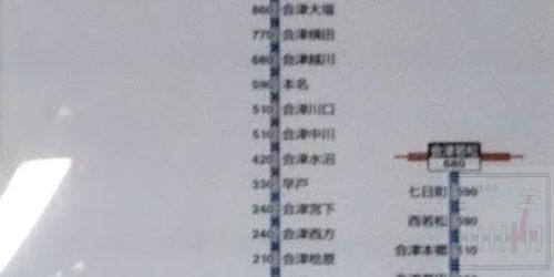 2022-4-10 (不鮮明)会津柳津駅運賃表 会津柳津駅 (あいづやないづ) JR東日本 東北本部 無人駅事務管コード:▲230911 <郷戸 会津柳津 会津坂... カテゴリー JR東日本/東北本部/福島支店