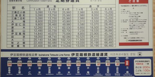 2025-10-13 伊豆箱根鉄道 三島駅運賃表 三島駅 (みしま) 伊豆箱根鉄道 直営駅事務管コード:6631101乗換駅:JR三島駅 || 三島 三島広小路> ... カテゴリー 22静岡県/東海私鉄/終着駅