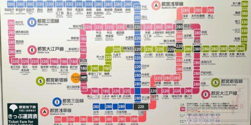 2025-8-20 都営新宿駅運賃表 新宿駅 (都営地下鉄) 乗換駅:JR新宿駅, 京王新宿駅, 小田急新宿駅, 京王新線新宿駅, 西武新宿駅, 東京メトロ新... カテゴリー 13東京都/地下鉄/新宿区/東京都営